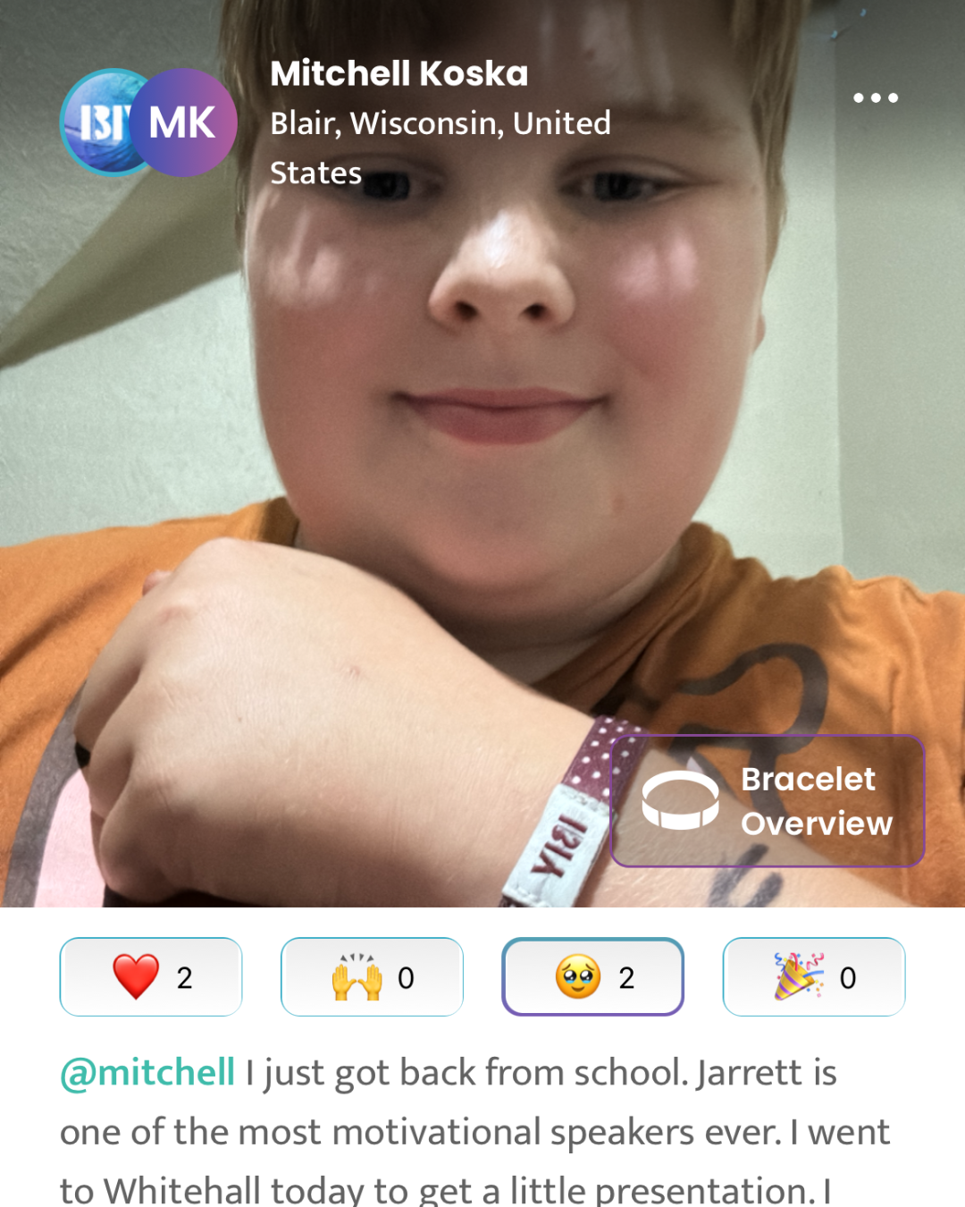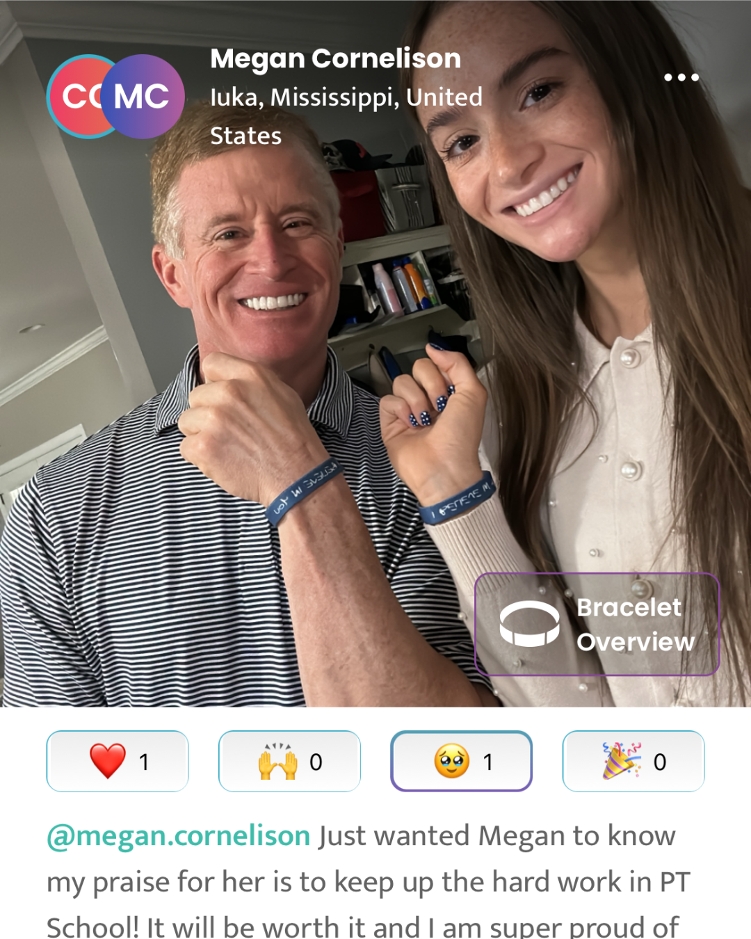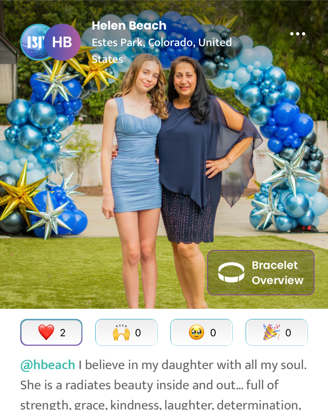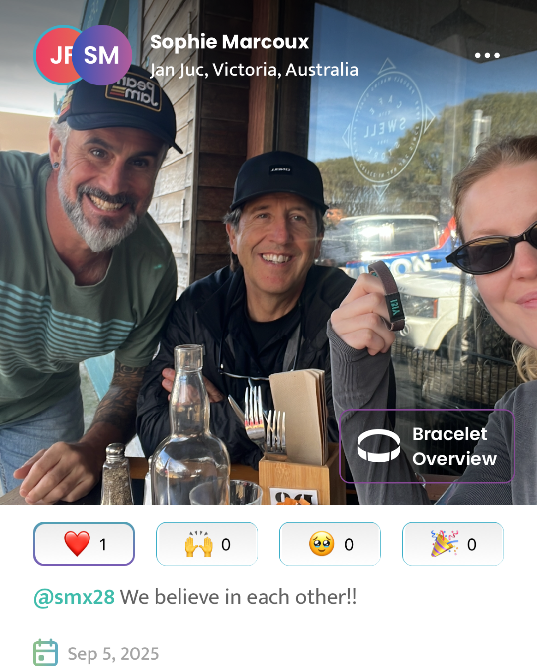Track the bracelet’s journey in real time as it moves from person to person, creating a ripple effect of positivity.