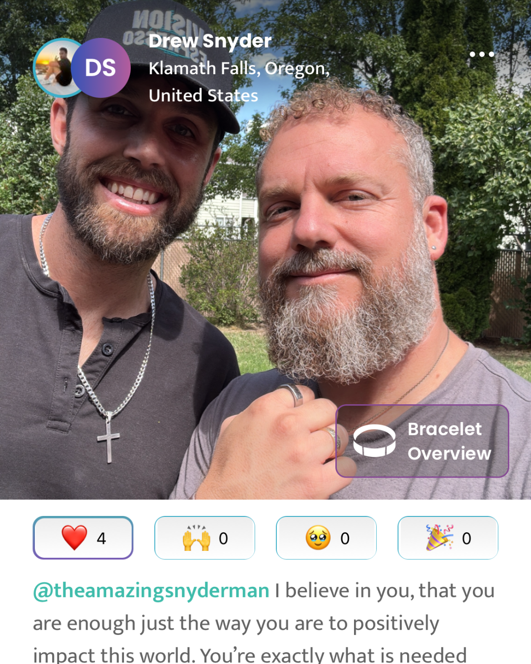 "After some conversation with an old friend, I took my bracelet off my wrist, told him I believed in him, and gave it to him. He began to tear up and told me that he tried taking his own life about two weeks ago, and that this bracelet may have just saved him. So blessed for this product and movement, it's truly saving lives."